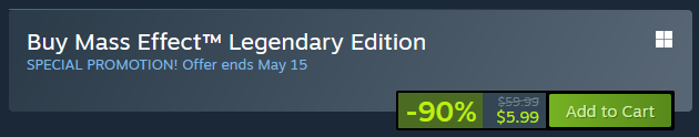 $5.99 is a pretty good deal to experience Bioware's finest space opera. Not fond of shooters but love RPGs? Don't worry, you can turn down the difficulty to the point it plays itself.