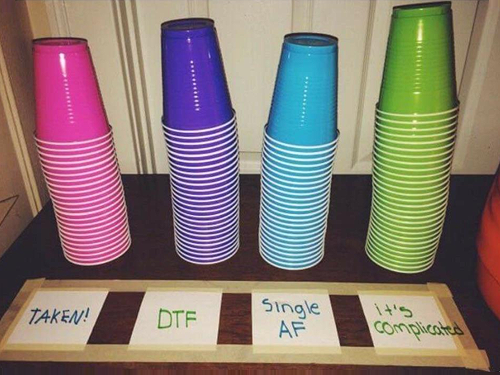 ![]() ♫ red solo cup, you're more than just plastic ♪♩ At a house party — or maybe it's a tailgate, or a festival, or just a random gathering of individuals at which beverages are served — you have the choice of a cup for the evening. Alcohol is flowing, and people have mingling on the mind, so your host has been kind enough to offer a color-coded collection of disposable drinkware for you to choose from. How kind! |